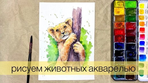 Как нарисовать львенка акварелью поэтапно | животные акварелью с нуля