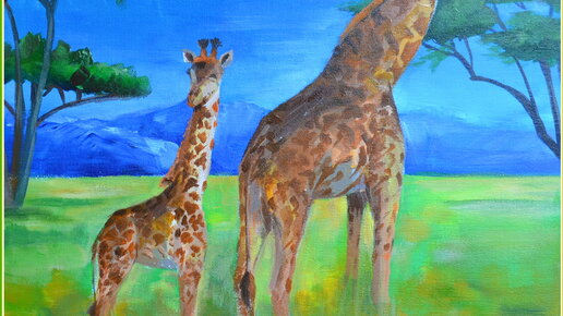 Как нарисовать жирафов. Вечер в саванне. Акрил