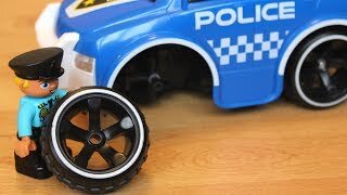 Полицейская машина протыкает колесо Сеня играет в машинки игрушки