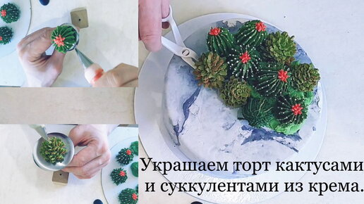 Украшаем торт кактусами и суккулентами. Кактусы и суккуленты из крема(фасолевая паста).