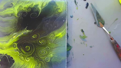 Камера не передала цвет, получилось классное сочетание, кислотного и серого. Картина на холсте.