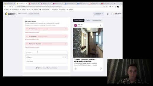 Настраиваю Яндекс Директ на ремонт балконов. Мастер-кампаний с оплатой за лида