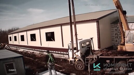 Ускоренное ВИДЕО сборки здания: фундамент, каркас, обшивка (komplektr.ru)