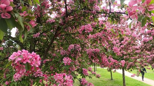 Яблоневый сад в Санкт-Петербурге в районе Купчино. Потрясающее по красоте цветение в июне 2022 года. FULL HD