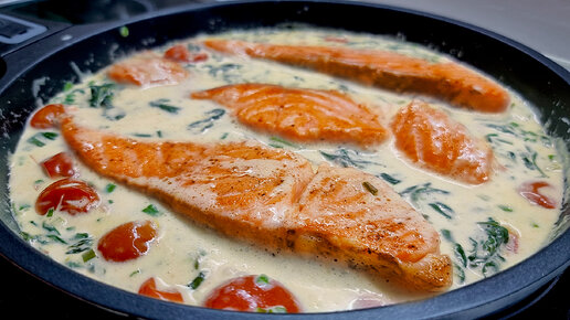 Лосось в сливочно-сырном соусе с овощами - вкусно и сытно: простые идеи блюд к обеду или ужину #391