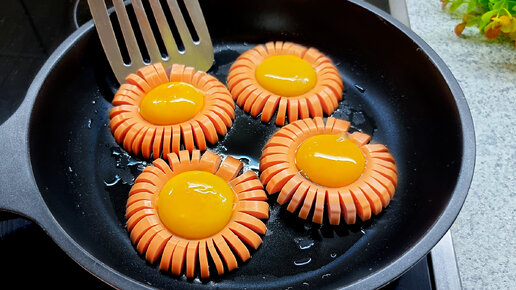 Яичница "Колбасные ромашки" - новые вариации глазуньи и омлета: простые идеи для завтрака #392