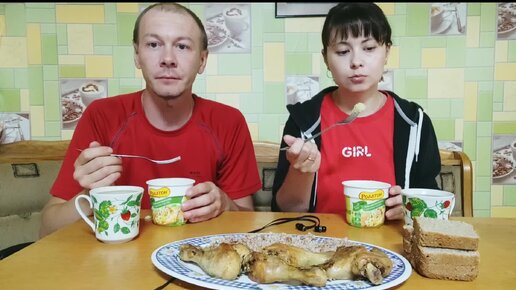 МУКБАНГ. Пюре Роллтон, курица с гречкой.