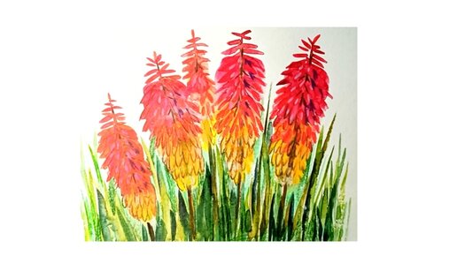 Необычный цветок - лисий хвост. Рисунок красками и карандашами.