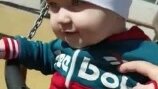 Шестимесячный малыш впервые на качелях, но со стороны можно подумать, что он уже раскачивается сам