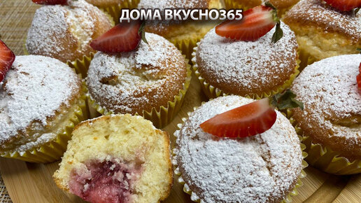Быстро и вкусно| Воздушные КЕКСЫ МАФФИНЫ на кефире с клубникой| РЕЦЕПТ от ДОМА ВКУСНО365