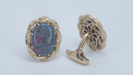 Мужские запонки из желтого золота с опалами триплетами и бриллиантами.