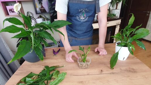Если обычная пересадка спатифиллума уже не помогает, в дело идёт нож, теперь спатифиллум растёт весь: корни, листья и даже детки