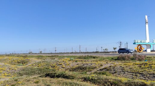 Цветущие побережье Черного моря у стелы "Евпатория". Крым2022