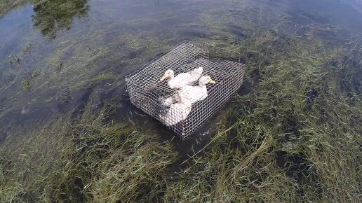 Купаем утят в клетке, что бы не разлетелись.