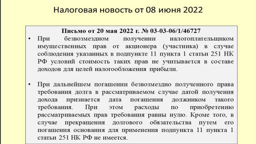 Налог на прибыль при получении права требования долга от учредителя