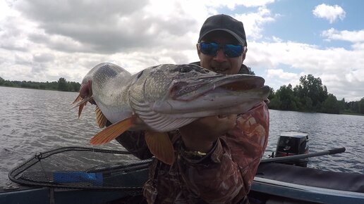 Эта приманка ловит только крупную щуку. Вываживание трофейной щуки.