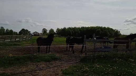 Лошади смотрят на неведомых зверей.