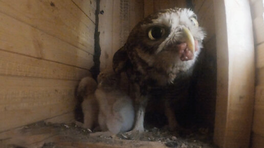 Домашние сычи Майка и Каспер кормят своих малышей