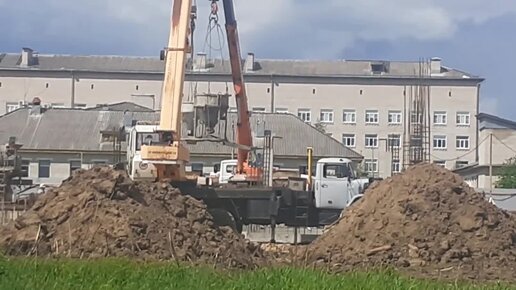 Работа техники на стройке больницы.