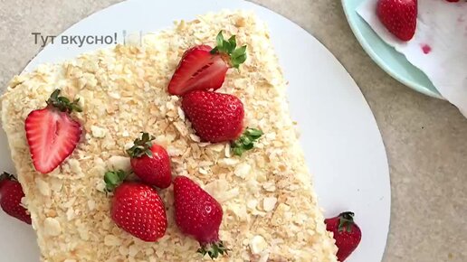 Рецепт торта без выпечки "Клубничный Наполеон" из готовых коржей