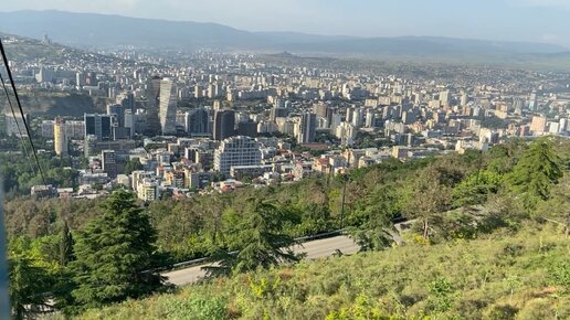 Спуск с канатной дороги с красивым видом на Тбилиси.