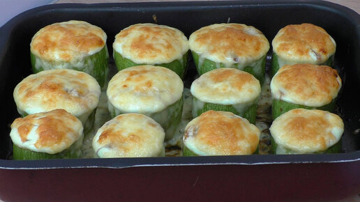 Безумно вкусное блюдо из кабачков: запечённые фаршированные кабачки "Пеньки" под сырной корочкой (что может быть вкуснее, обед, что надо)