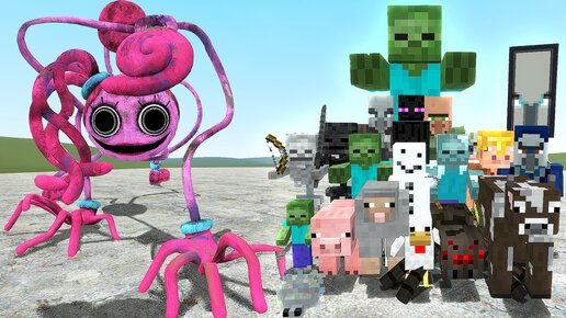 Мама длинные ноги против майнкрафт в гаррис мод! Mommy long legs and minecraft, garry's mod