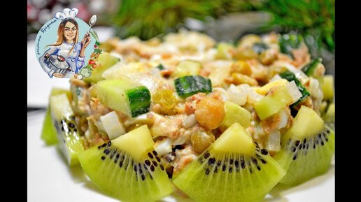 Салат с тунцом. Рецепт салата. Украшаем киви. Салат на новый год.