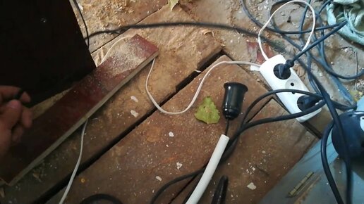 Примитивное освещение над столом в гараже из того что было