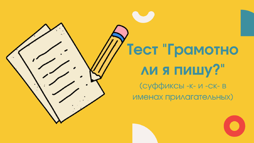 Тест "Грамотно ли я пишу?" (суффиксы -к- и -ск- в именах прилагательных)
