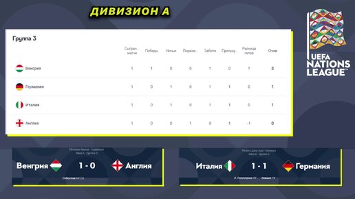 Лига Наций УЕФА 2022 • Дивизион А • Результаты • с 4 по 6 июня • Венгрия - Англия, Италия - Германия, Хорватия - Франция, Австрия - Дания