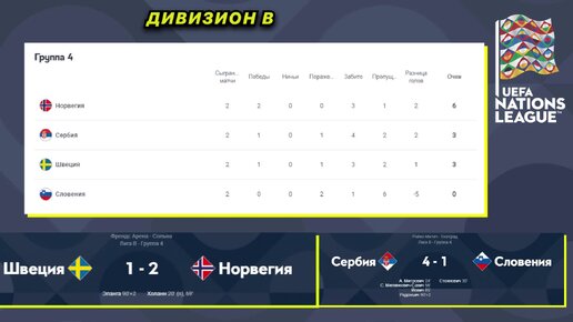 Лига Наций УЕФА 2022 • Дивизион Б • Результаты и Таблица • с 4 по 6 июня • Армения -Ирландия, Сербия - Словения, Швеция - Норвегия