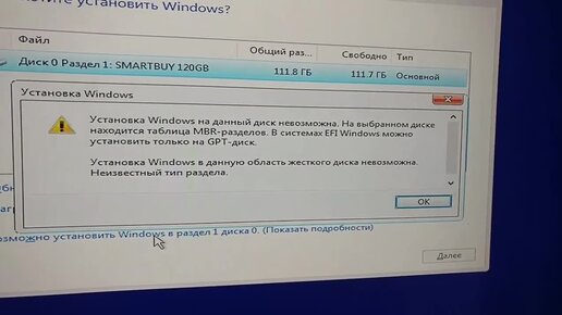 Проблема с установкой Windows. На выбранном диске находиться таблица MBR -разделов.