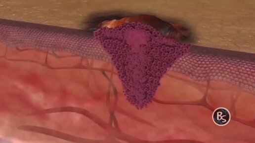 Рост раковых клеток на коже человека