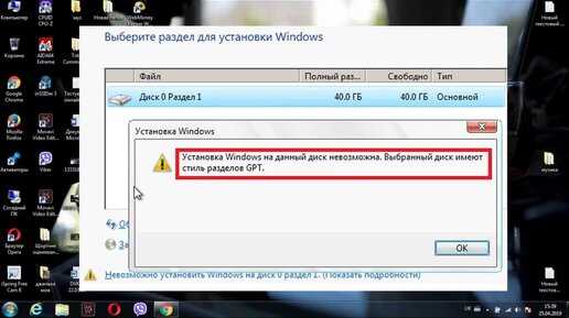 Диск имеет стиль разделов GPT Решено!