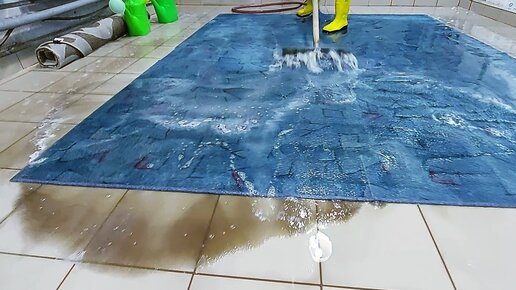 Голубой ковролин выдает волны коричневого раствора: завораживающий процесс стирки ковра в нашем цехе в Кемерово