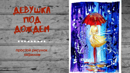 Как нарисовать ДЕВУШКУ С ЗОНТОМ ПОД ДОЖДЕМ. Простой рисунок красками.