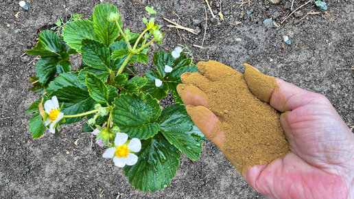 Вносим народное удобрение под куст клубники. Добиваемся обильного плодоношения куста.