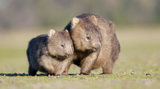 Очаровательное семейство вомбатов переходило дорогу и попало на видео.