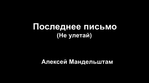 Алексей Мандельштам - Последнее письмо (Не улетай)
