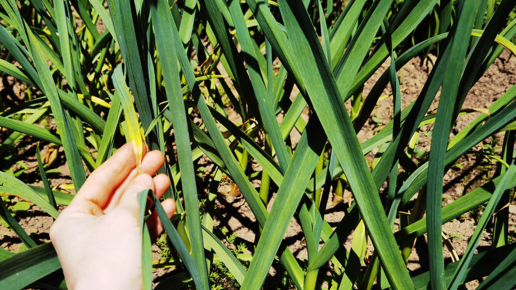 Если пожелтел чеснок, делаю подкормку серосодержащим удобрением и листья становятся снова зеленые