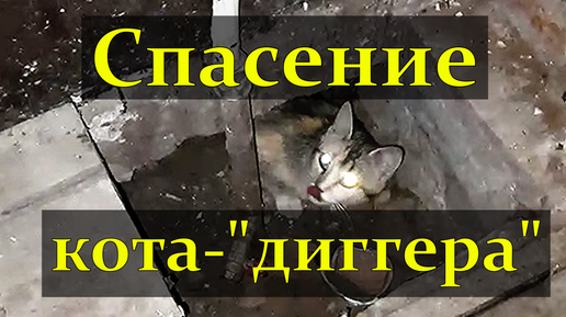 Спасение кота-"диггера". Не мог пройти мимо