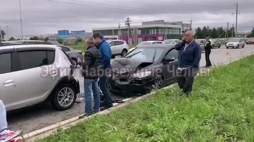 На проспекте КАМАЗ напротив АЗС произошла массовая авария: столкнулись пять машин.