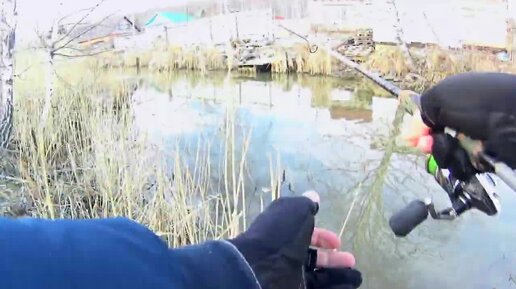 Рыбалка по мутной воде . Зацепил беременную щуку. Ловля щуки с берега.