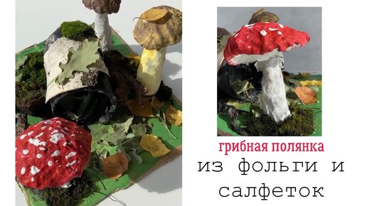 Грибы из салфеток, береза из пластиковой бутылки. Осенняя поделка в детский сад для совместного творчества с детьми дома