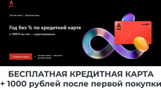 Как получить бесплатную кредитную карту Год без процентов + 1000 рублей на карту