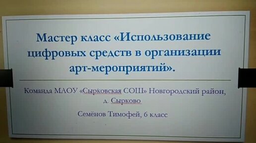 Мастер-класс «Использование цифровых средств в организации арт-мероприятий». МАОУ "Сырковская СОШ" д. Сырково
