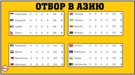 Кубок Азии по футболу. 3 раунд отбора. 1 тур. Результаты. Расписание. Таблицы.