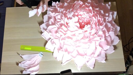 Огромный розовый цветок из бумаги. Украшение на стену.