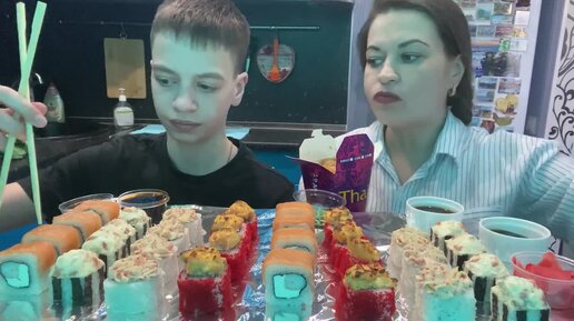 МУКБАНГ РОЛЛЫ СУШИ_ЛАПША WOK_MUKBANG SUSHI ROLLS_WOK NOODLES